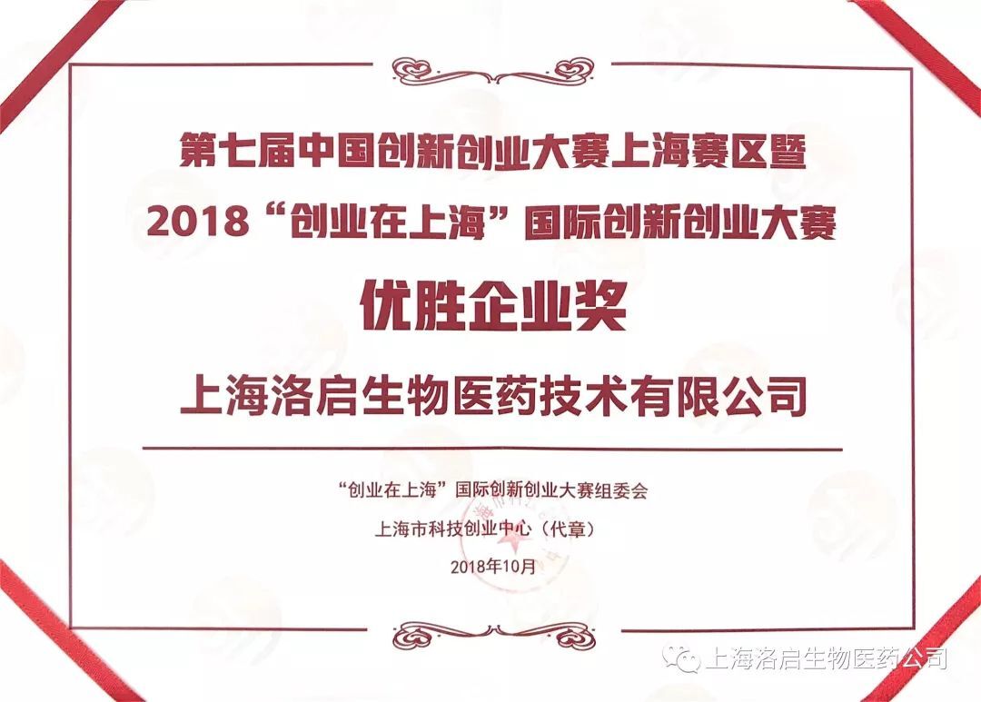 【喜讯】公海555000官网生物荣获2018“创业在上海”国际创新创业大赛优胜奖