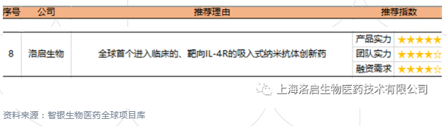 近期,由智银资本发起的智银创新药“未来独角兽30”排行榜正式揭晓,公海555000官网生物凭借全球首创的靶向IL-4R的吸入式纳米抗体创新药LQ036荣登榜单前十。